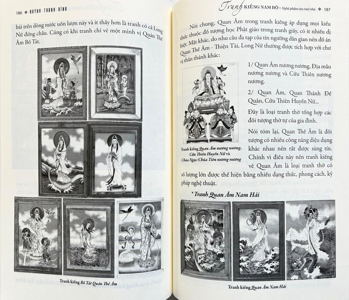 ベトナム南部では、ガラス絵はほぼすべての家庭、そして共同住宅、寺院、神社などで見られる。これはガラス絵が礼拝、装飾、祝祭などに用いられる習慣として定着していることを示している。 したがって、ガラス絵を研究することは、この地域の文化への理解を深める上で重要な意味を持つ。ヴぇトナム南部ガラス絵の特徴は、そのテーマや内容が文化的・宗教的な背景によって多様であるということだ。そのため、ベトナム南部ガラス絵のコレクションは、非常に豊かで多様な作品群となっている。 本書は、ベトナム南部の民俗芸術を愛する読者に、ベトナム南部の文化生活に古くから存在し、現在も受け継がれている様々な様式のガラス絵の起源、歴史、内容、そして特徴に関する情報を提供することを目的としている。白黒写真の他、途中2ヶ所に合計32ppにカラー写真のページがある。 160x240o, 278pp, SC, ヴェトナム語